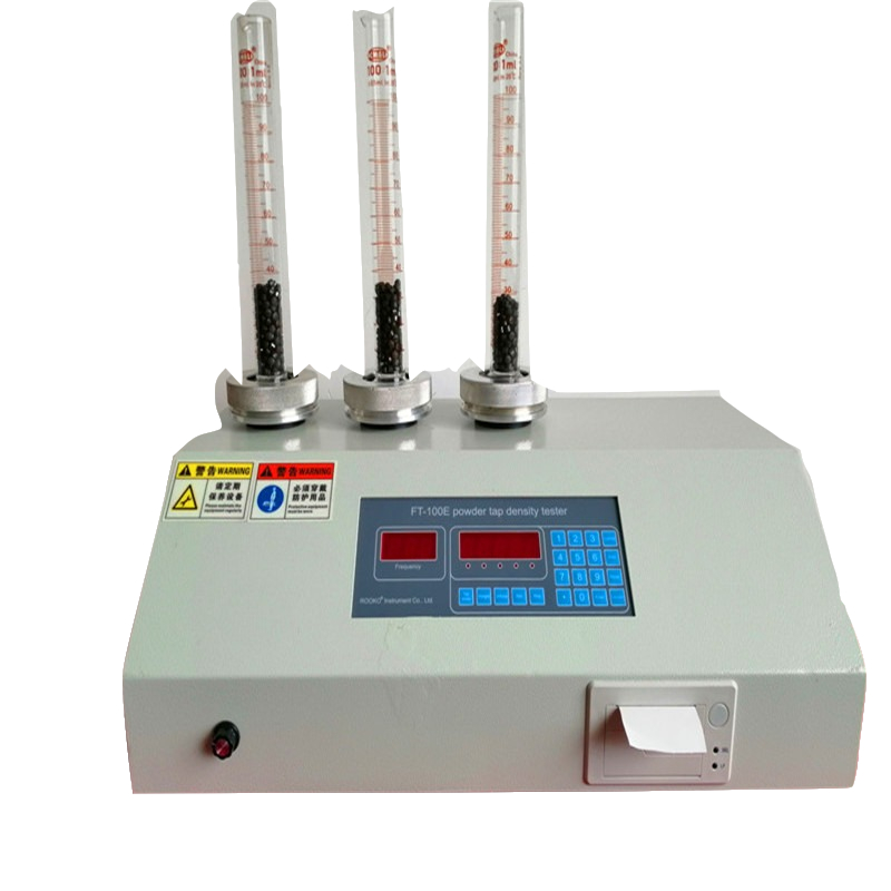頻率和振次數(shù)字顯示,并可以調(diào)節(jié);配備自動計算功能和打印機系統(tǒng),具有保護設(shè)定功能,存儲功能,平均值計算功能,能打印出測試時間(年月日時分秒)質(zhì)量、體積、振實密度值,平均值及測試編號等數(shù)據(jù)功能;同時具備振動次數(shù)和振動時間兩種測量模式;通過定體積組合量筒測試松裝密度,可以獲得豪斯納比和壓縮度數(shù)據(jù)