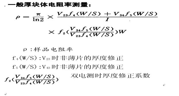當電流通過1、4探針,2、3探針測試電壓時計算如下:
