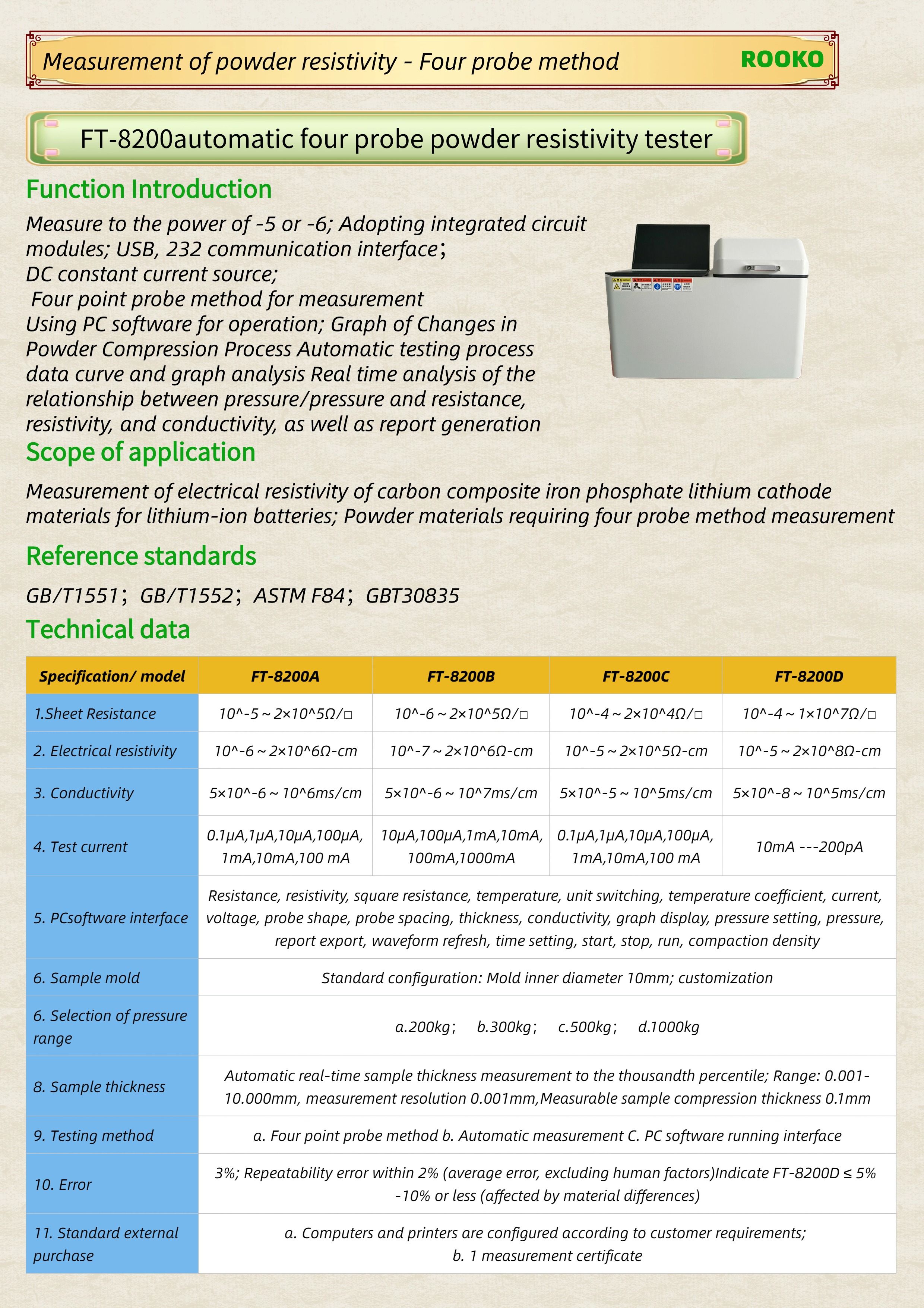FT-8100 Four Probe Powder Conductivity Tester
