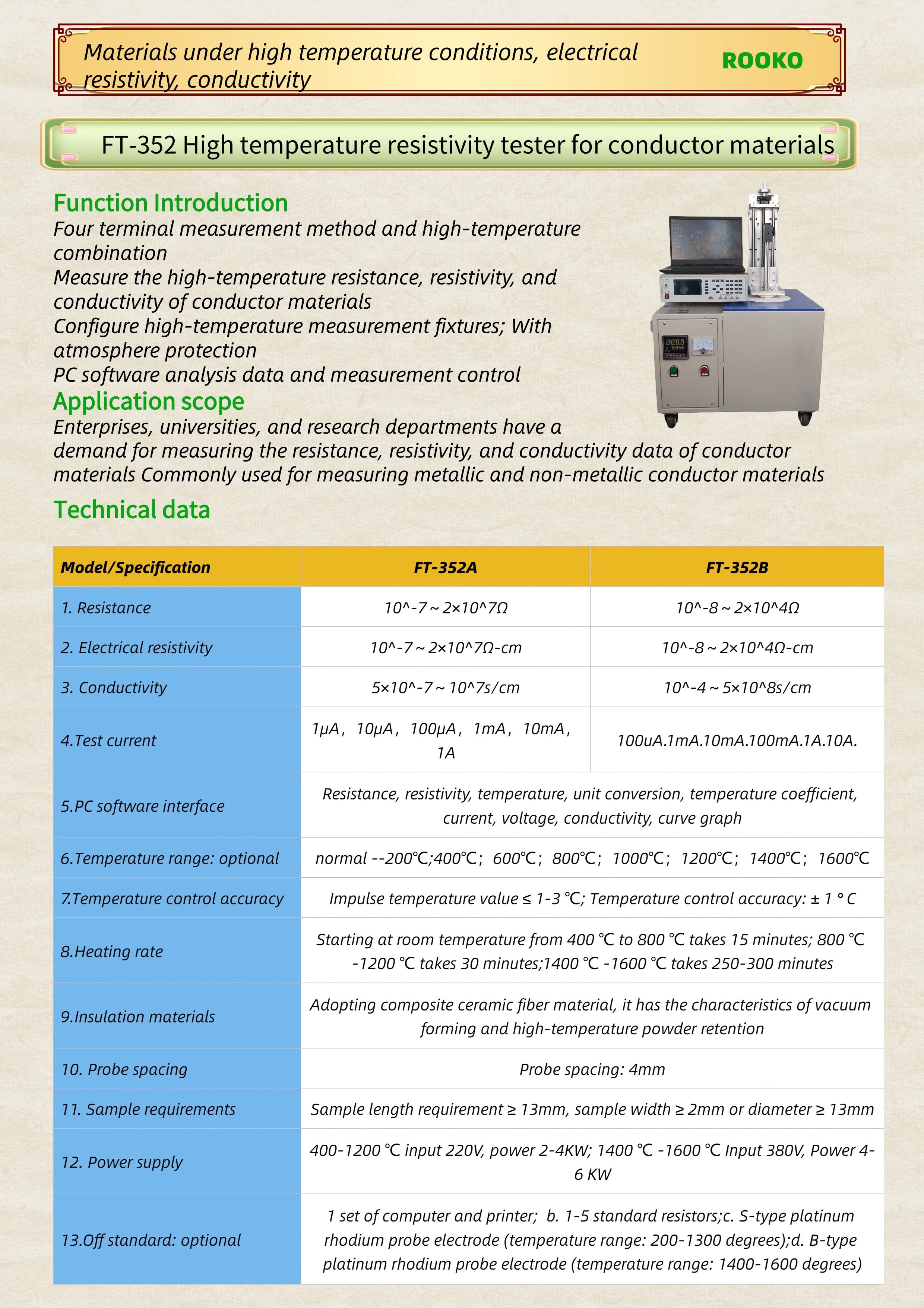 FT-352 High temperature resistivity tester for conductor materials